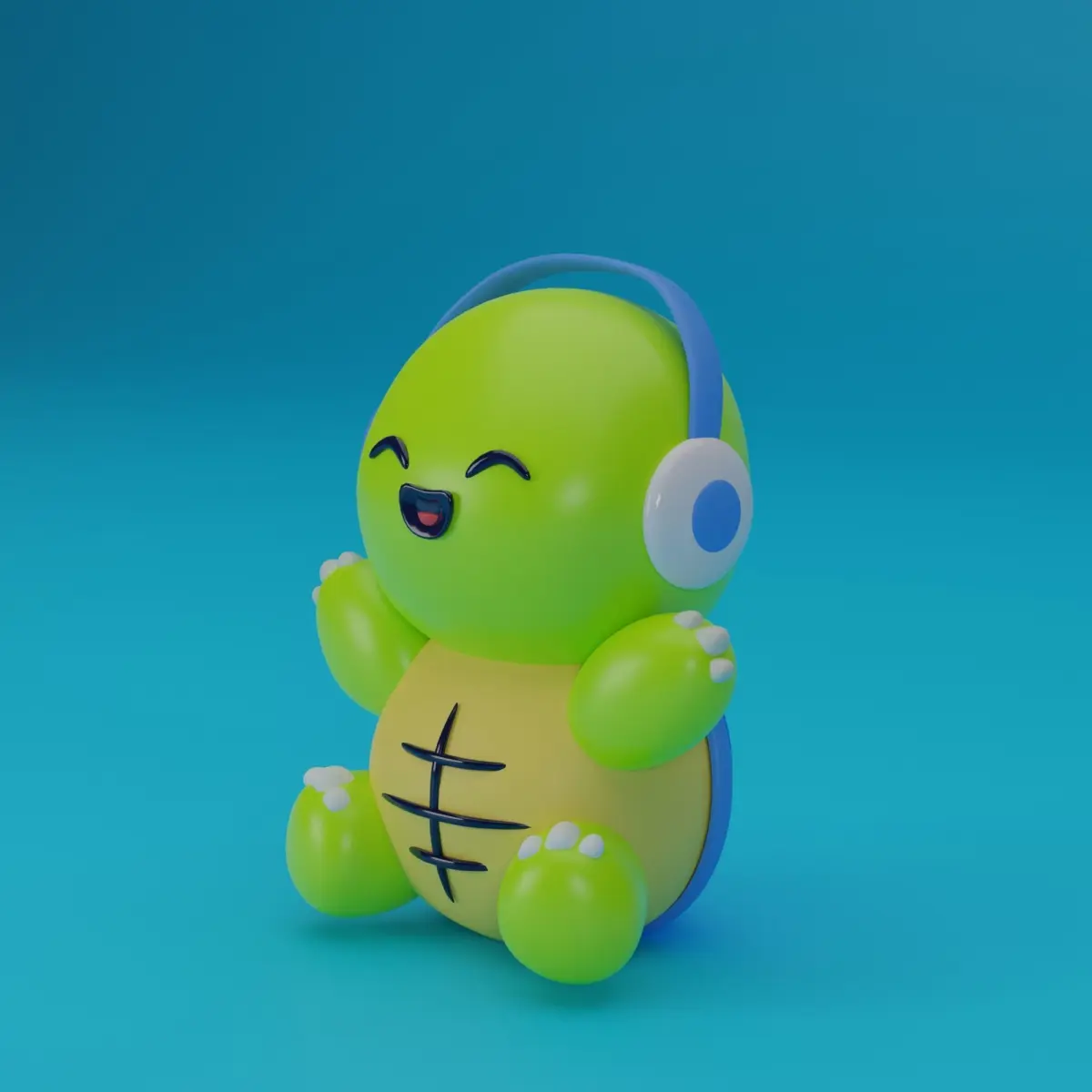 Cute Turtle cartoon 3D character make form blender. He comes with blue and white headphones contrast with body color and mini tongue is red color it look so cute. He has a playful personality. Inspiration from my friend her wanted me to make a turtle. And send more turtle picture. It took a long time to decide which one to get. As you can see
