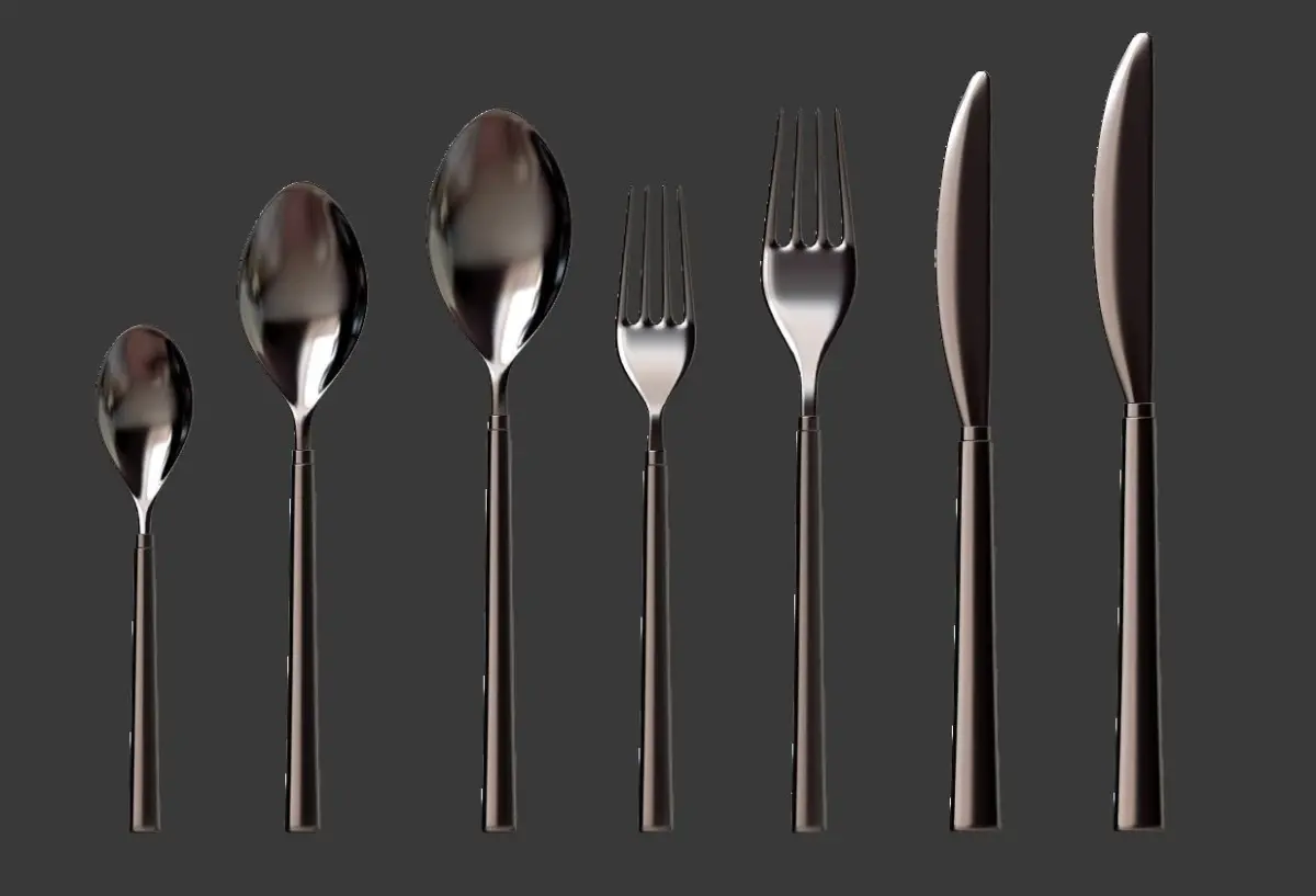 -7 different Cutlery model (3 Spoon, 2 fork, 2 knife)-contains 3DS, FBX, OBJ, and DAE/ Collada file formats-Rendered images