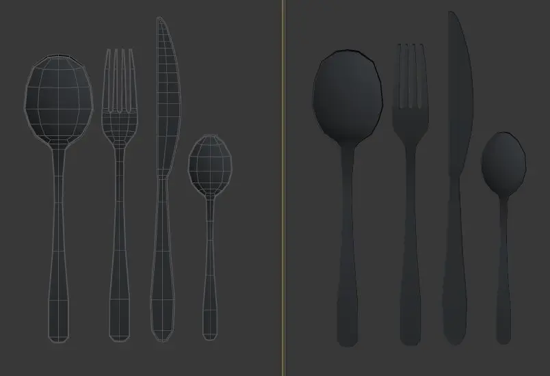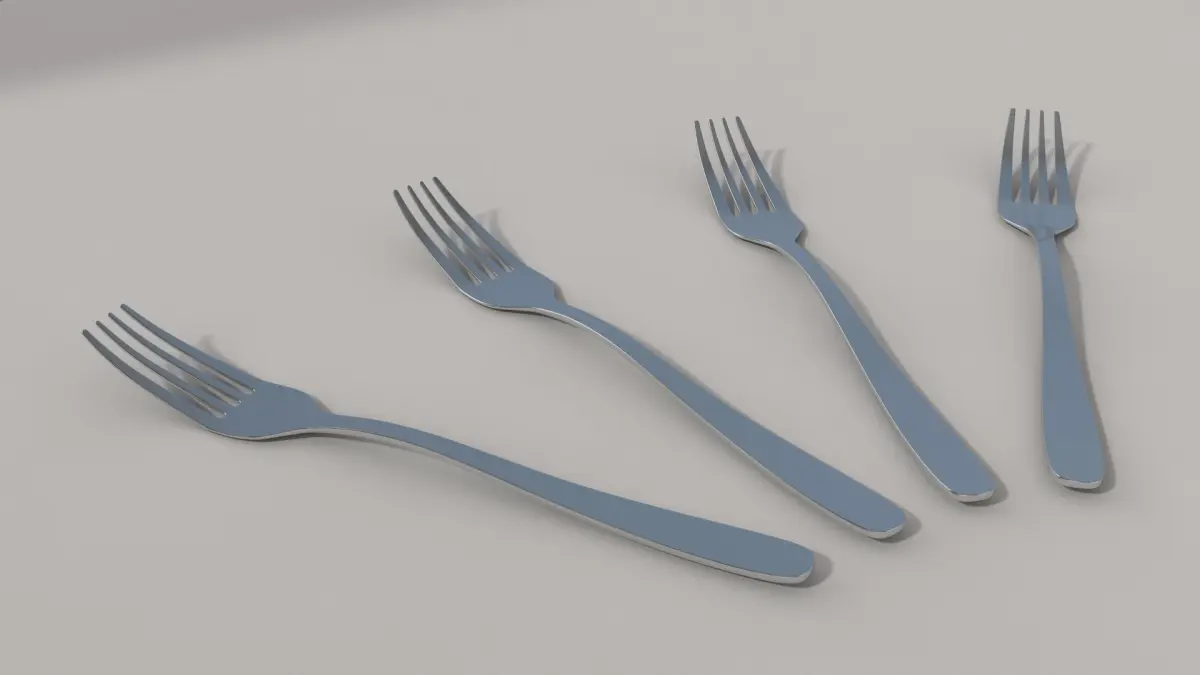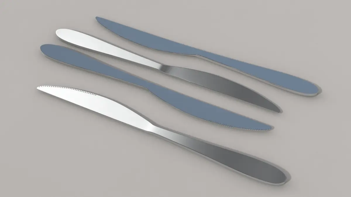 A standard model of cutlery.Contains two different spoon, fork and knife.2 shaders of metal, only normal map for knife.
