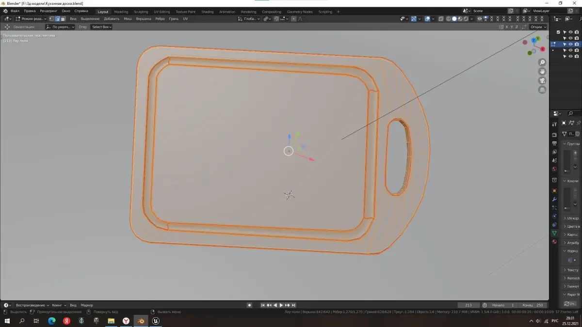 3D model of a wooden cutting board. 3D model with materials, textures 2048*2048