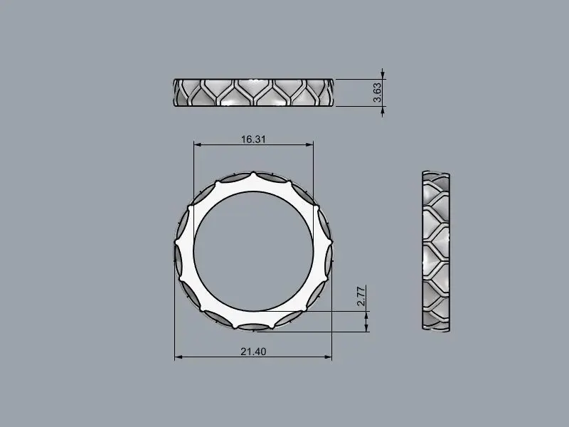 This ring can be made of any material.If you specify the ring size and details, I can model it to those dimensions.If there is a file format you want, please let me know.