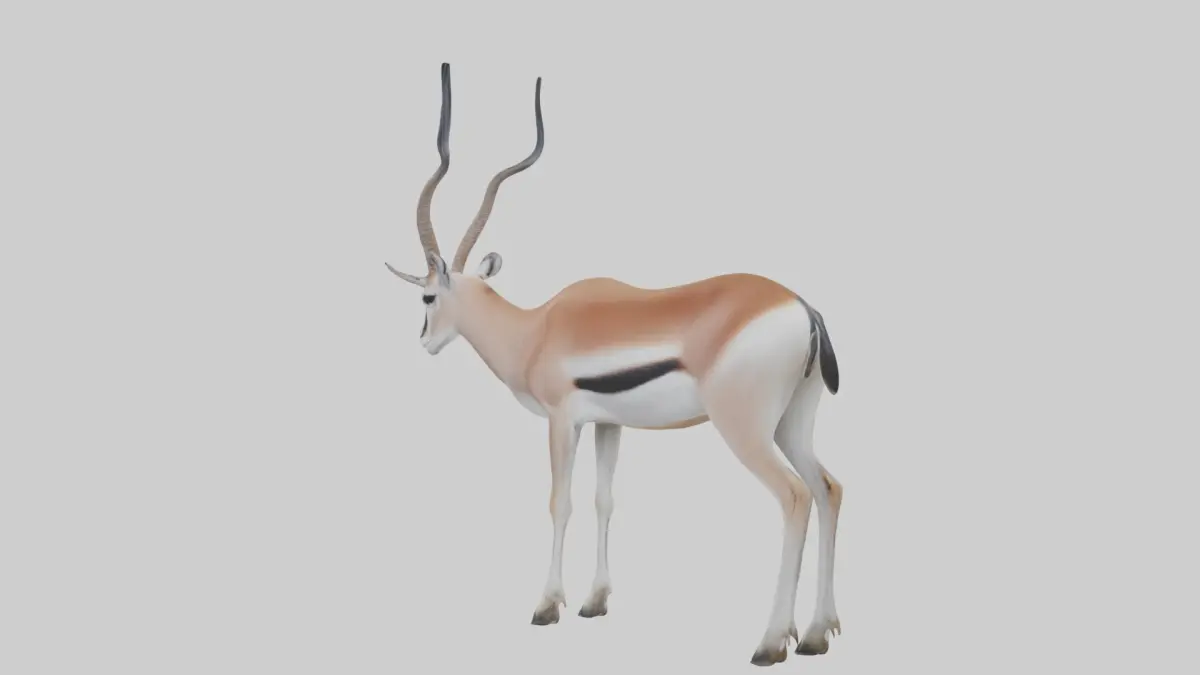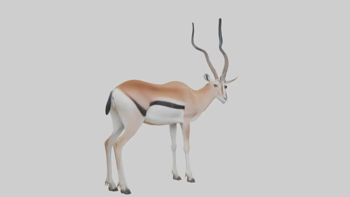 Cuvier’s Gazelle, 3D model, endangered antelope, North Africa, desert, wildlife, curved horns, large eyes, FBX, OBJ, STL, GLB, USDZ, Blend
