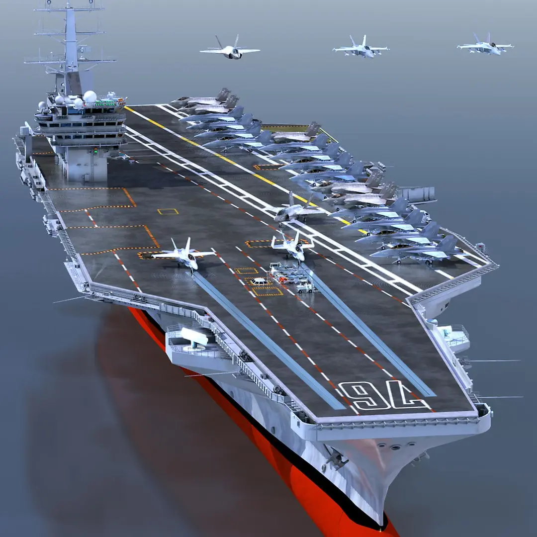- A stowed and ready version of the F18, for populating the deck and hangar are included. A complement of F18E, F18F and F35C (flying and gear down) have been addd as well as a more complete set of deck equipment shown in the thumbnails close to the end.