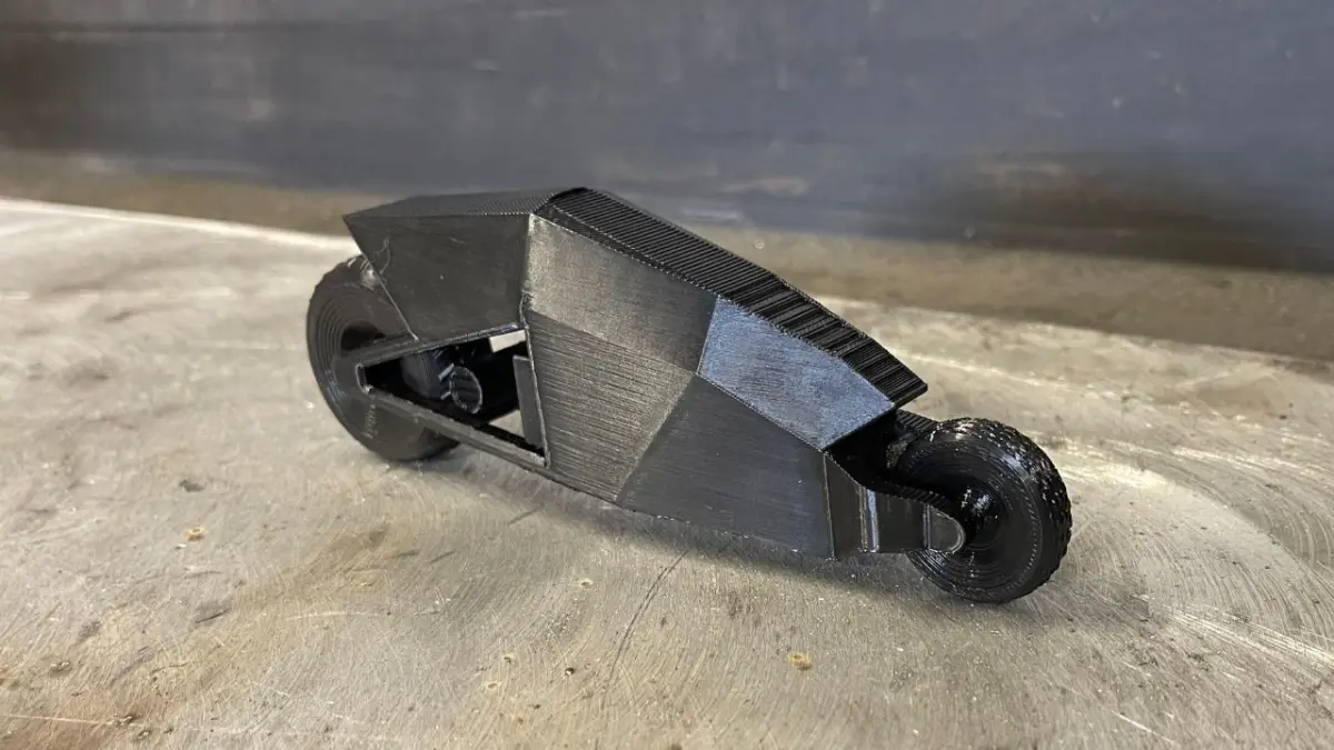 This 3D printable scale model is inspired by the Cyber Bike featured on the DK the Welder YouTube channel. The design has been slightly adjusted for easier 3D printing, with parts like the wheels and non-functional battery box clipping securely into place without the need for bolts or additional hardware. The recommended printing orientation is upright on the build plate, as shown in the YouTube video, with support material needed underneath but not elsewhere. The wheels are best printed on their sides with support. Proceeds from this model will go directly toward supporting the DK the Welder channel, helping fund more exciting projects and content.