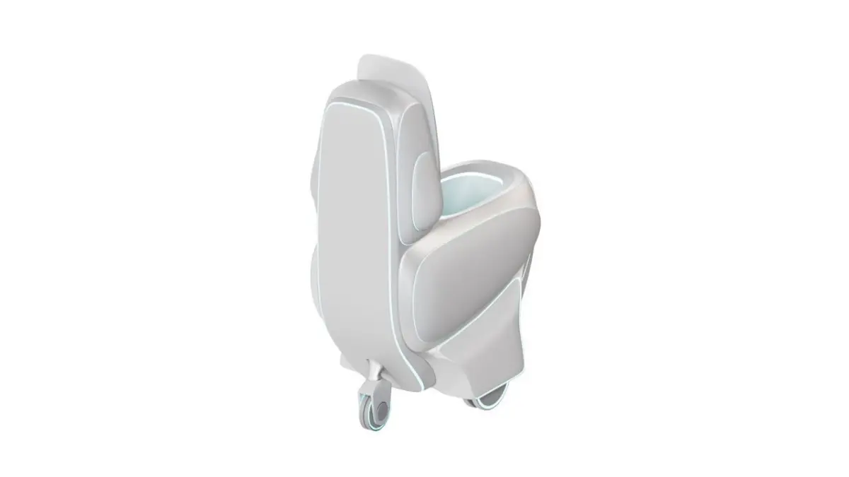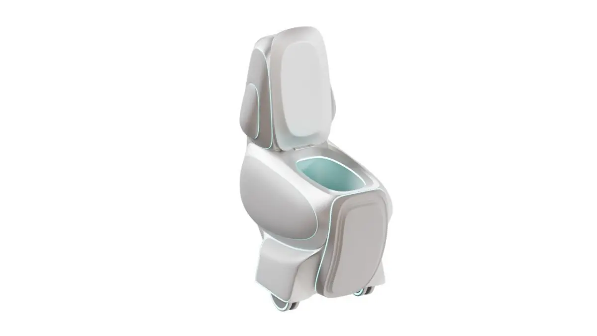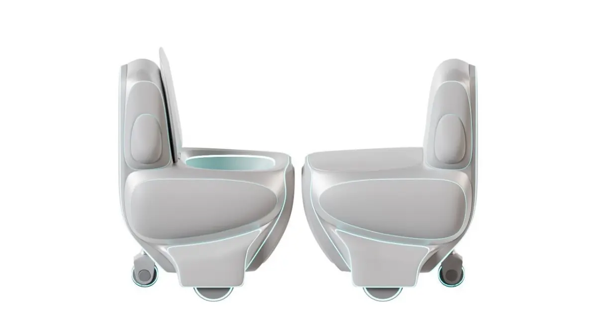 This model is an interpretation of the toilets of the future. The beautifully streamlined shapes and backlighting at the joints of the main parts create a feeling of a super clean and uplifting toilet bowl that immerses you in a long reflection on life. The main feature of this toilet is that it has wheels to move around the house, so you never feel anxious in a time of need and always know that your faithful servant will always find you in any room and come to your rescue himself! The ball-bearing rear wheel is responsible for both the balance of the three-wheeled structure and the turns at the same time.