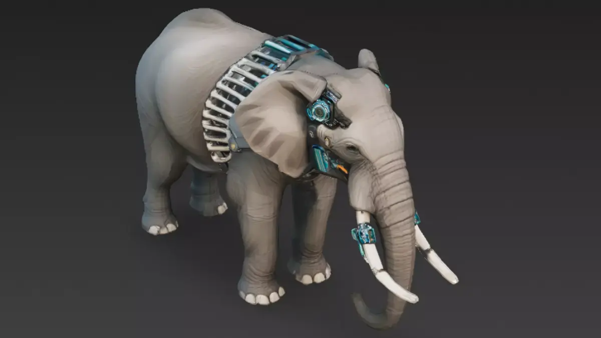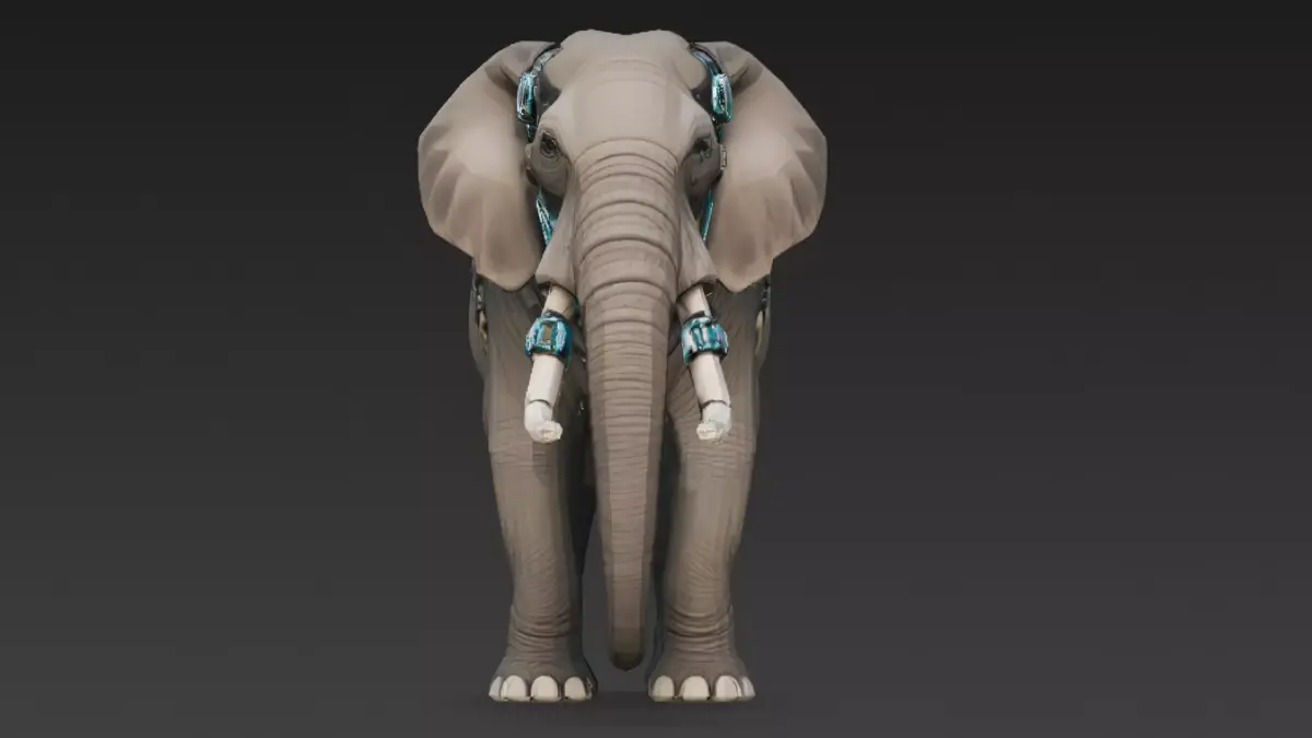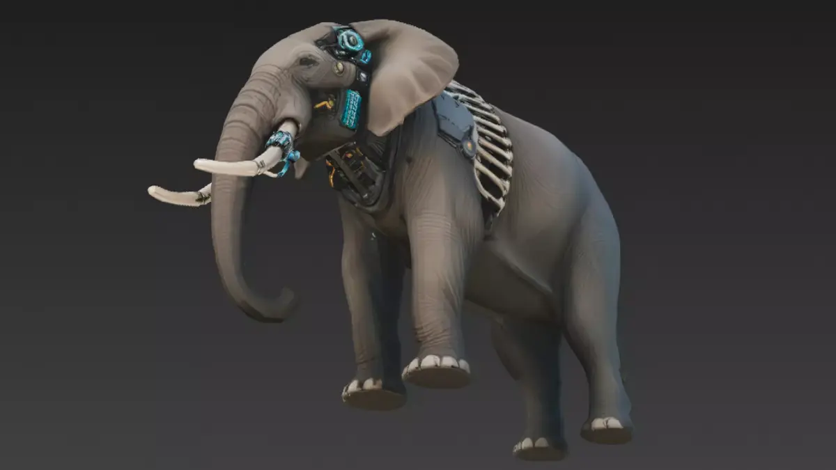 - Elephant with cybernetic prosthetic enhancements
