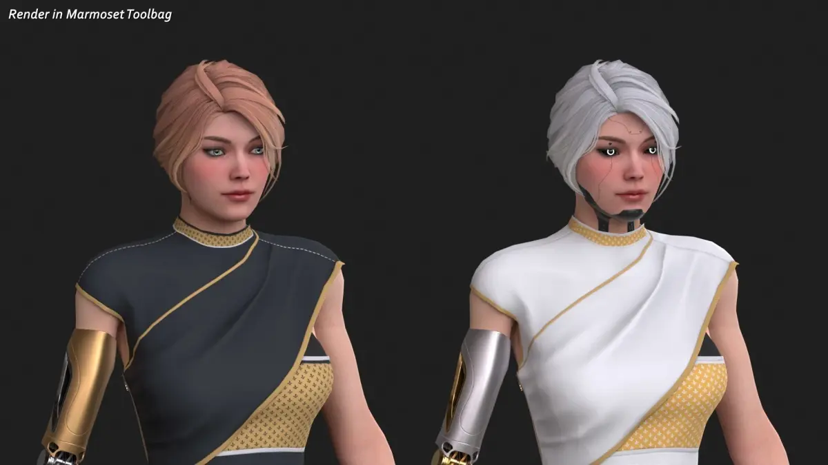 Low-Poly Rigged PBR Modular Character - Cyber Girl R35 Pack