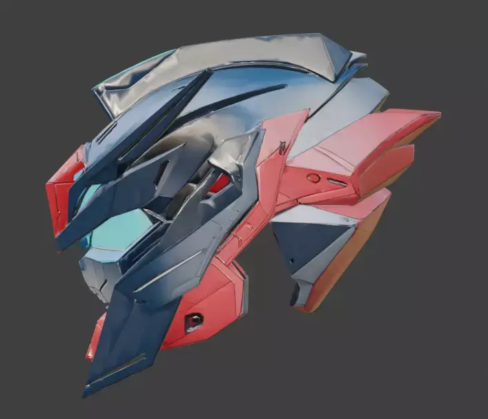 Tagsmecha helmet, robotic headgear, sci-fi armor, 3D model, cyan neon, futuristic knight, gundam-inspired, hero asset, PBR materials, navy and red