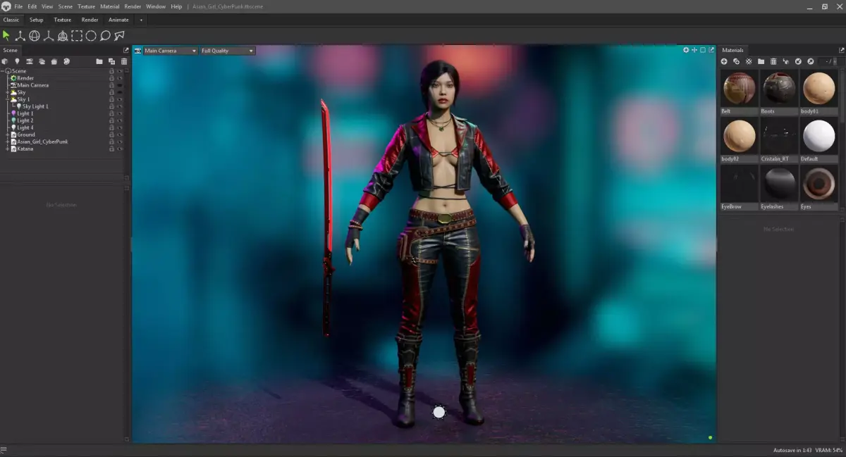 The package contains the marmoset scene (Marmoset 4) from my personal project, Girl Cyberpunk