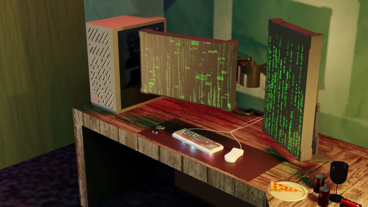 Visualize your projects with this render of a cyberpunk room ready to be recreated as a 3D asset. The composition, lighting, and level of detail provide an excellent reference for modelers and concept artists looking to capture the essence of the Cyberpunk 2077 universe. Observe the spatial layout, color palette, and integration of technological and urban elements.