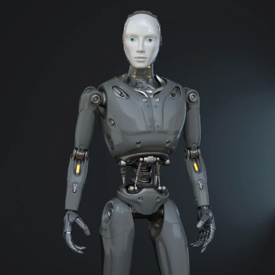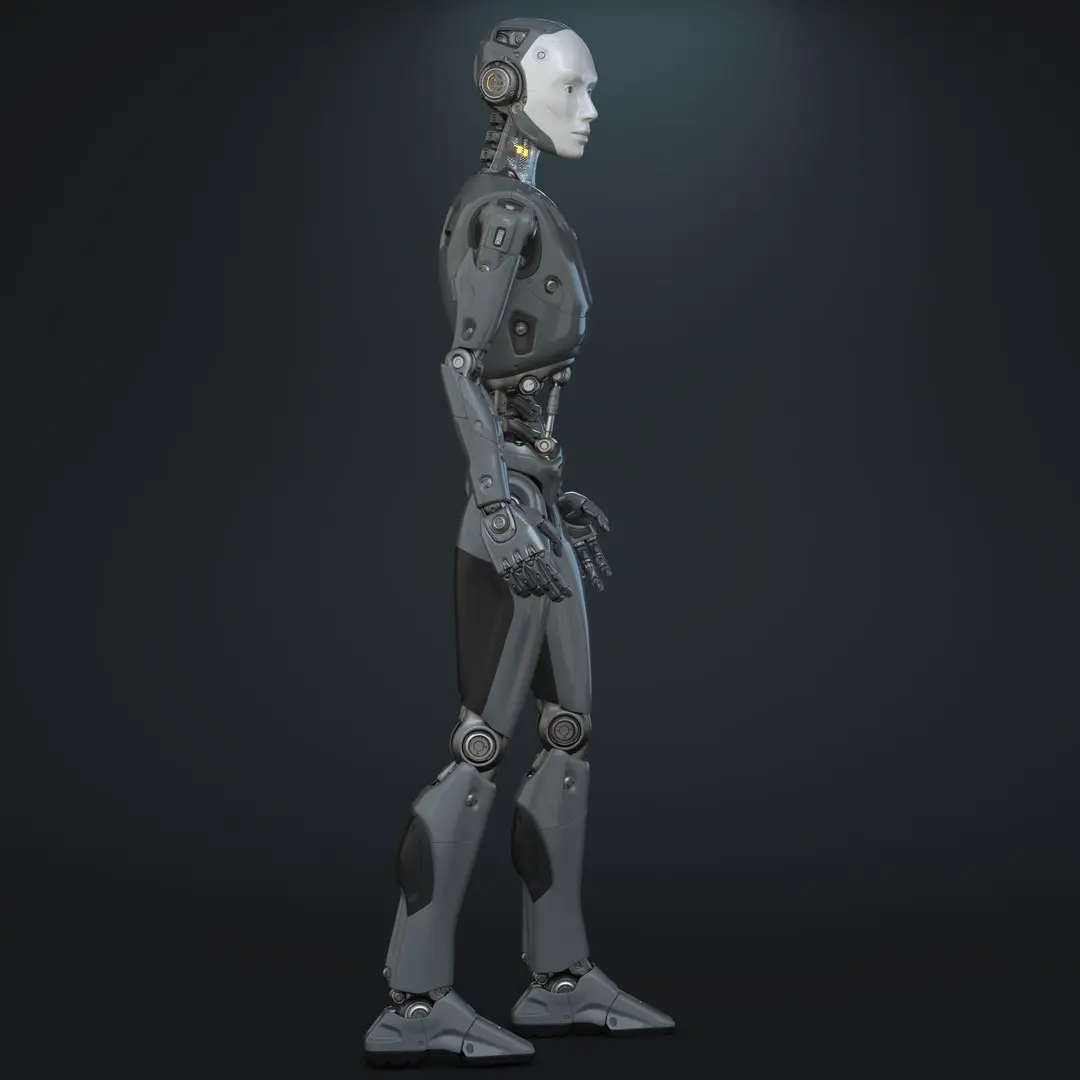 This is a finely detailed 3d model of a futuristic sci-fi male robot.