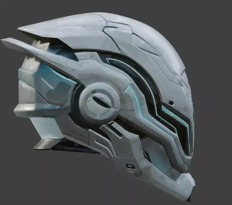 Modular Communication Hubs: Includes circular, reinforced modules on the sides of the helmet with integrated cyan light rings, suggesting advanced long-range transmission or neural-link capabilities.