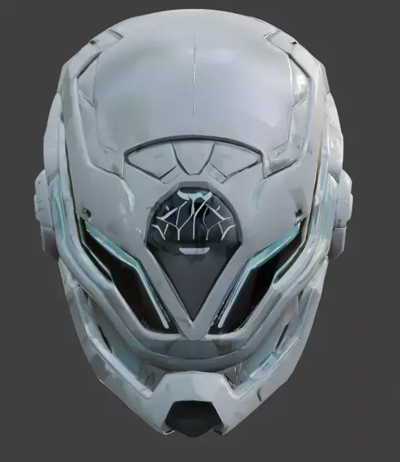 Key FeaturesKinetic Neon Light Paths: Features recessed lighting channels along the brow and jawline emitting a vibrant cyan glow, designed to simulate active energy flow or sensor data processing.