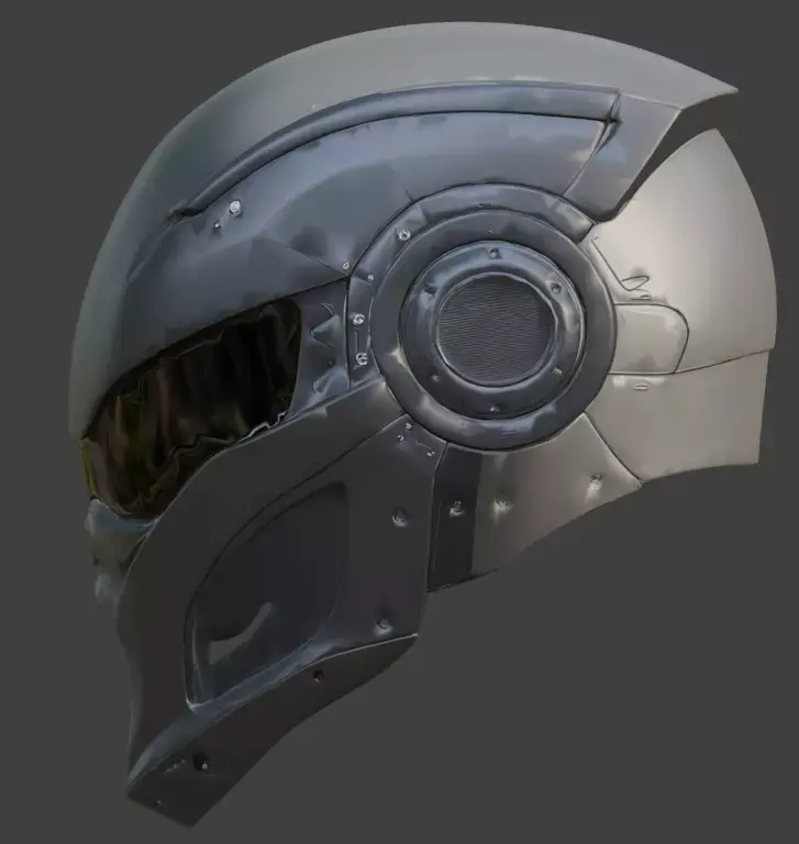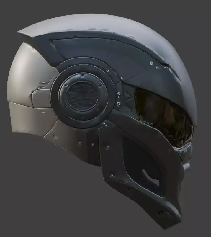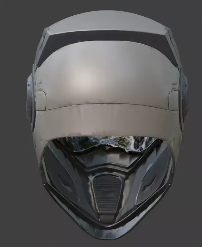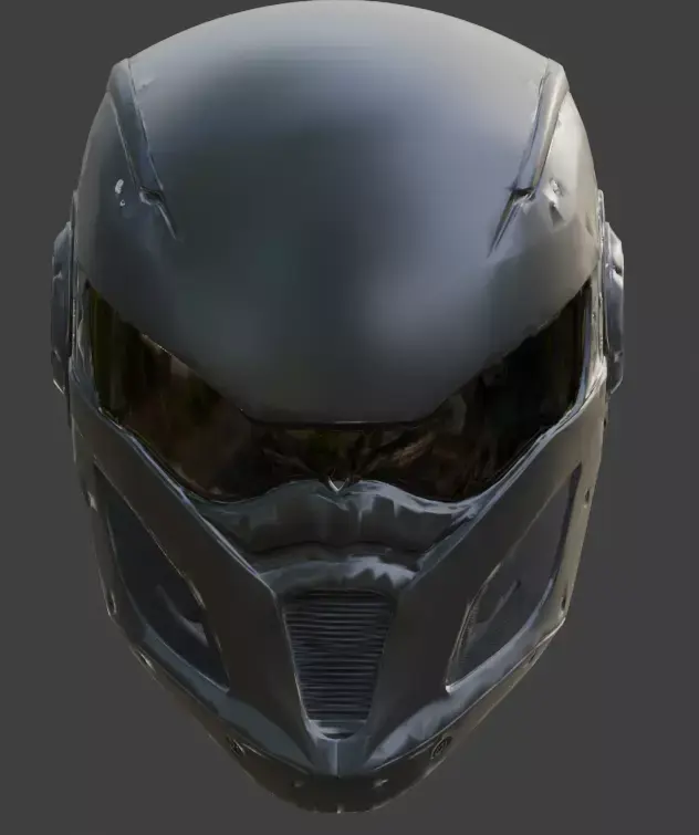 Authentic PBR Textures: Materials exhibit realistic light interaction, creating a sharp contrast between the light-absorbing matte primary panels and the semi-reflective properties of the ocular visor.
