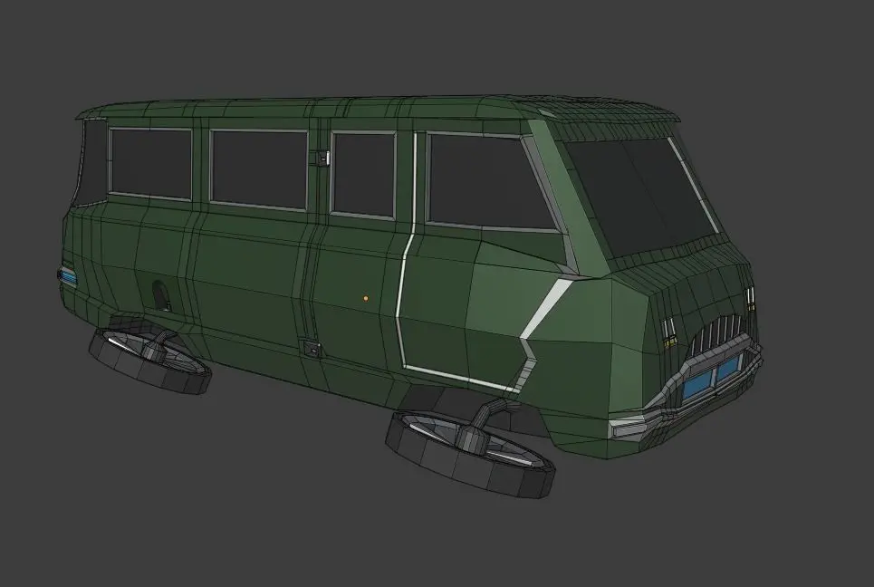 low poly cyber version of UAZ boohanka (буханка) on hover wheel