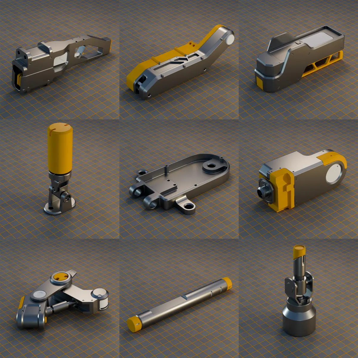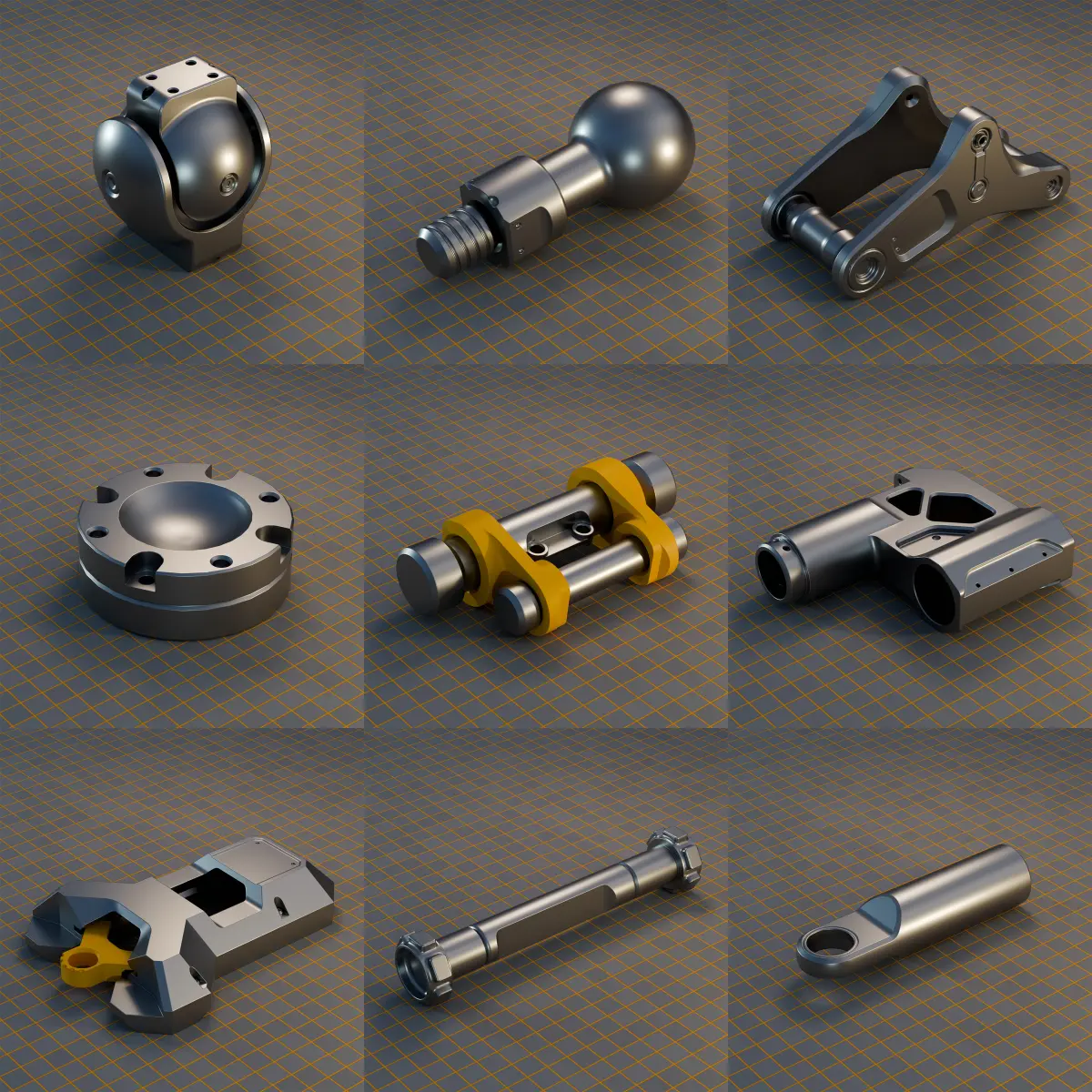 High-Quality HardSurface AssetsThese models were originally created in Plasticity and optimized for versatility. Each piece maintains a clean mid-poly structure (10k-25k polygons) for easy use in concept art, high-end renders, and real-time applications. Whether you need mechanical joints, plating, or connection parts, this pack provides a solid foundation for building complex sci-fi creations.
