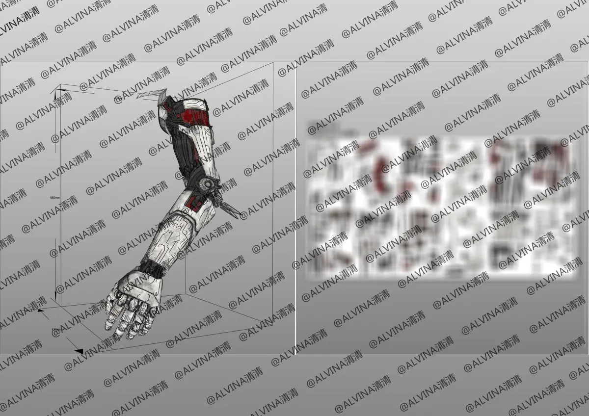 ---Regarding the drawings - there are a total of 4 file formats for the components in the compressed package (two arm drawing files, including OBJ files+Foam/EVA unfolding pattern PDO files). The PDO file format can only be opened in the Pepakura Designer application, as shown on the display image. You can view that each component has been split and flat arranged, and can use it directly