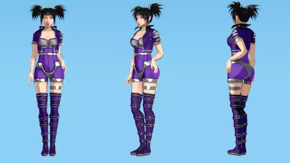 Rigged toon female character (body + face + clothing + hair)