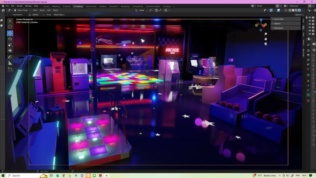 ARCADE CYBERPUNK themeInteriorwith purple light