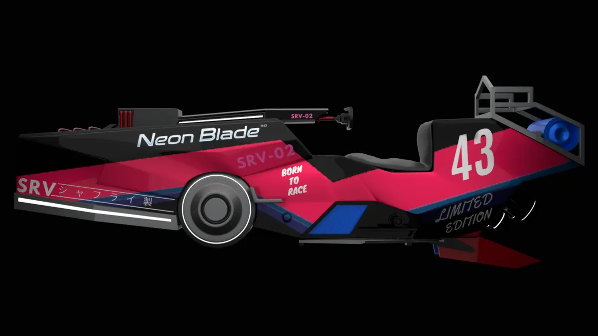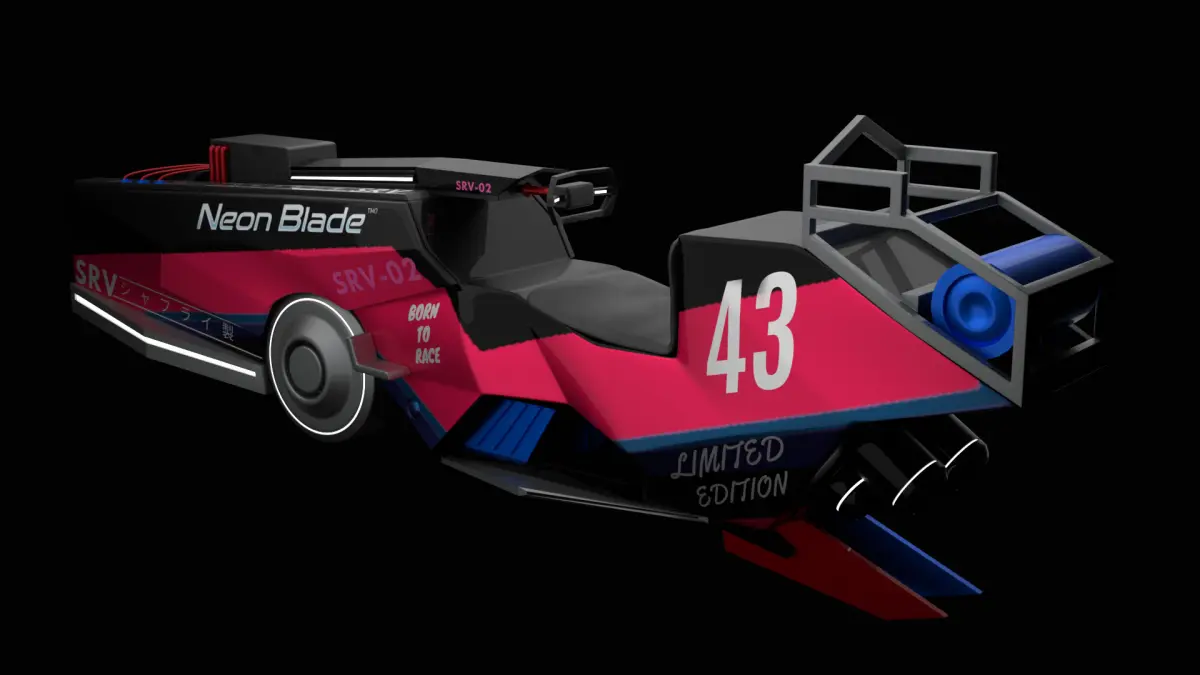 Bring a futuristic atmosphere to your projects with the SRV-02 Neon Blade, a retro-futuristic cyberpunk themed hover racing vehicle designed to wow on neon roads or space tracks. With an aggressive aerodynamic shape, bold color accents, and Japanese-style lettering, this asset is ready to add attitude to your virtual world.
