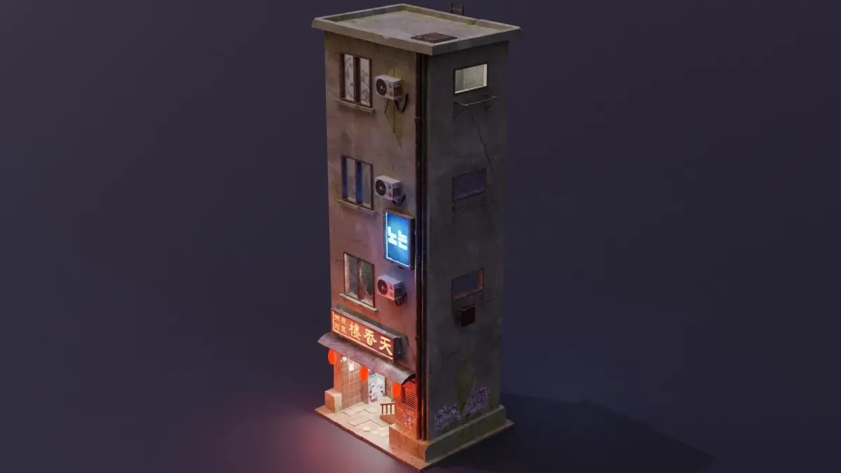 Cyberpunk house with neon signs and simple interior. It's readily available to import in Unity3D and Ue4.