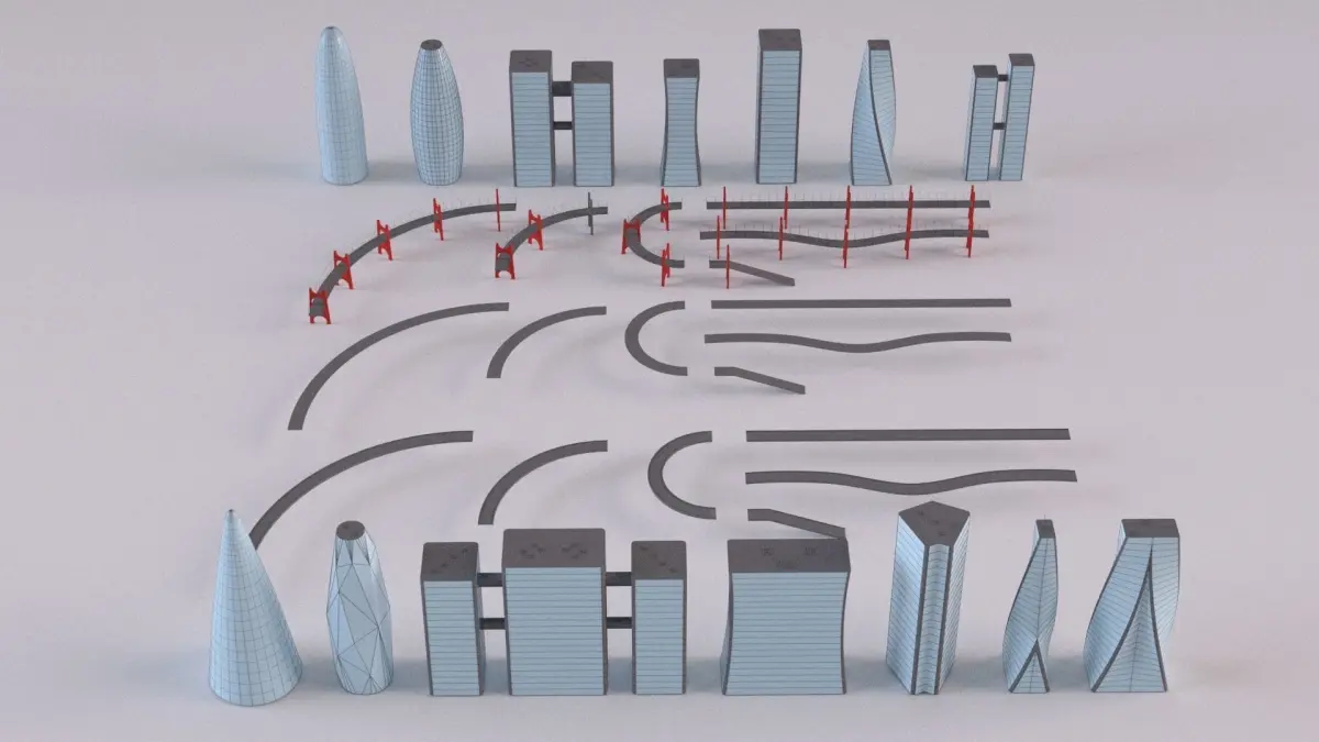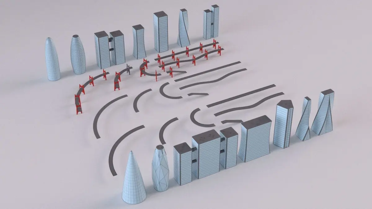 SciFi Cyberpunk Futuristic Buildings, Bridges and Roads Collection neon city buildings pack collection Tokyo skyscraper cityscape sci fi futuristic building city modern house architecture science fiction tower cityscape urban Future City futuristic street exterior