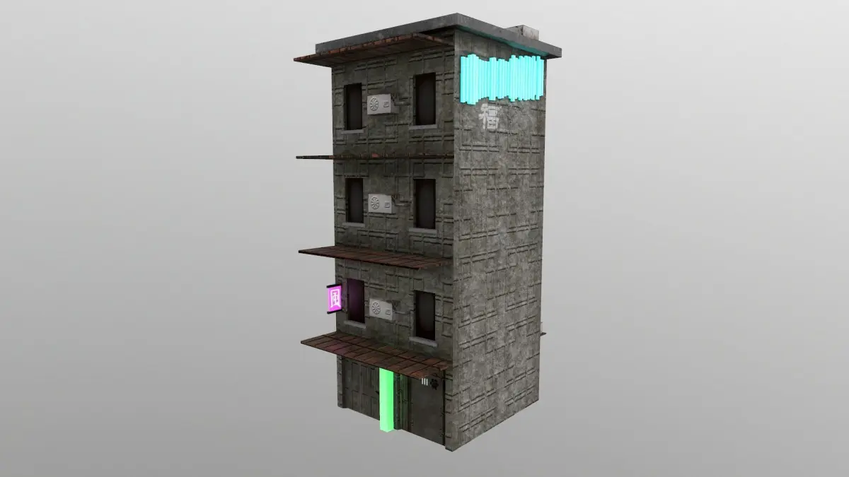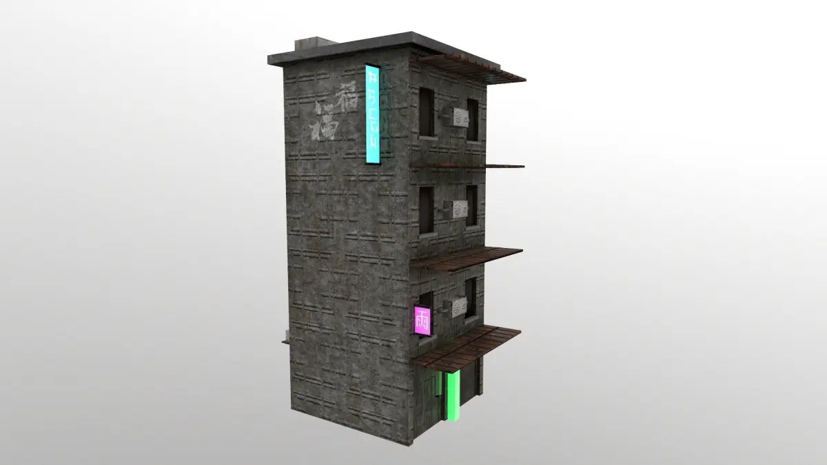 PBR game ready Cyberpunk City Building 14. Texture resolution 2048x2048