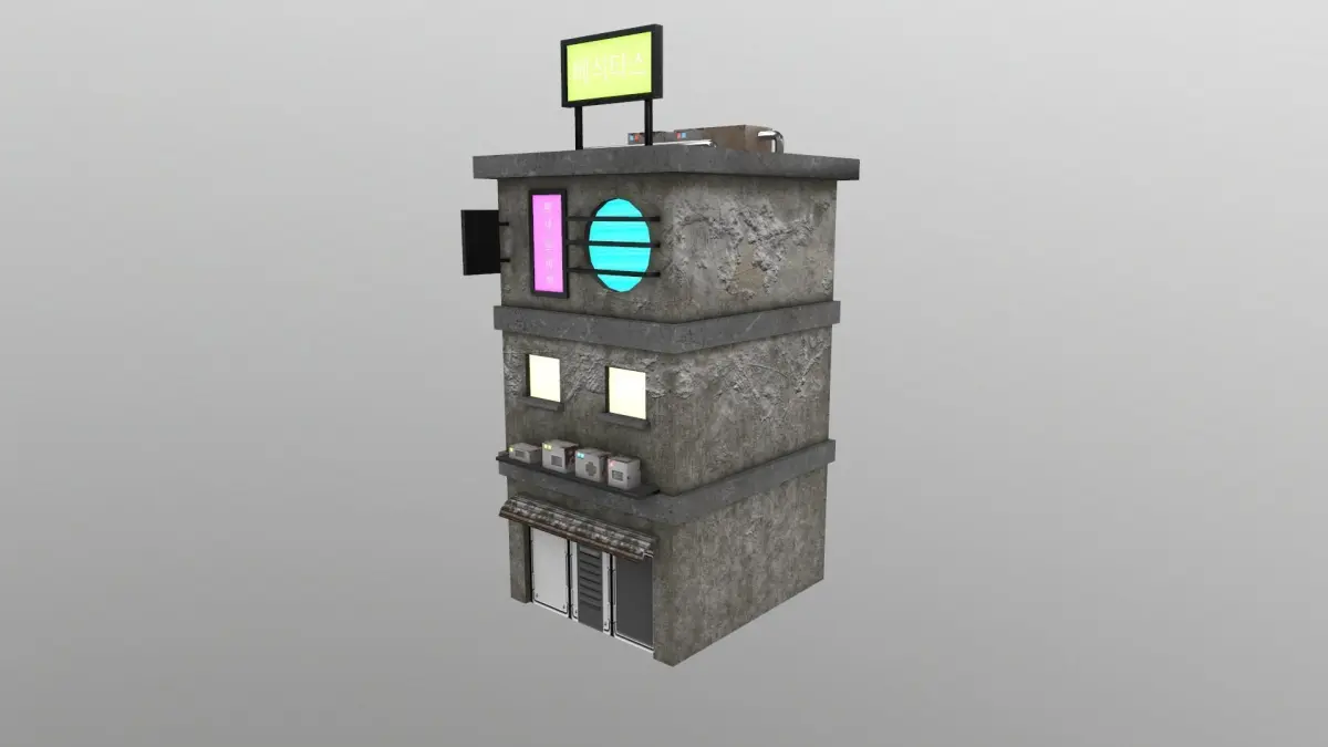 PBR game ready Cyberpunk City Building 35. Texture resolution 2048x2048