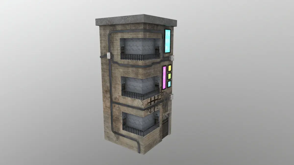 PBR game ready Cyberpunk City Building 40. Texture resolution 2048x2048