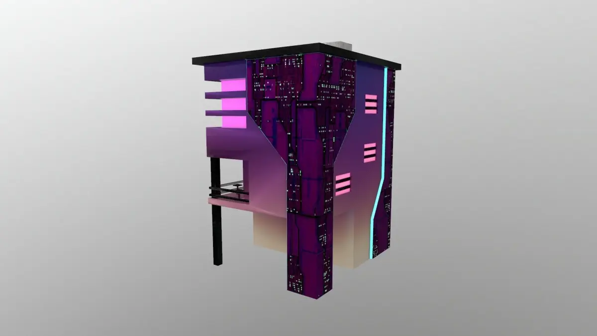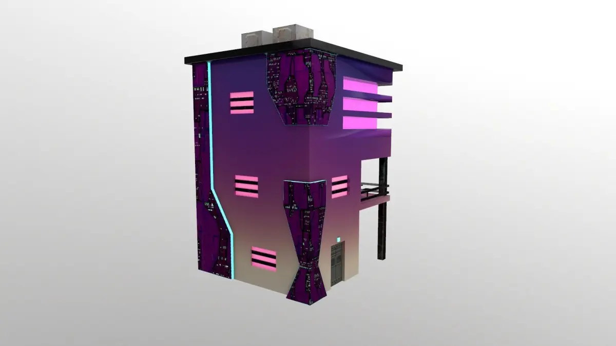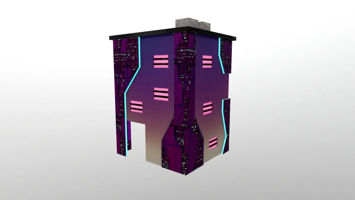 PBR game ready Cyberpunk City Building 9. Texture resolution 2048x2048