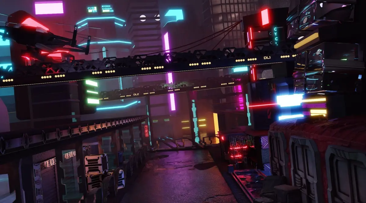Cyberpunk city street set made solely in Blender 3.2.1. Most textures are from AmbientCG.