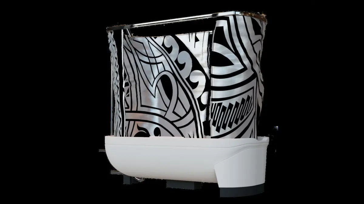 About this asset:High detaail bath and shower combo with tub and shower nozzle with curtain.