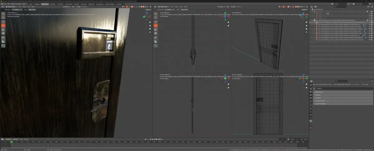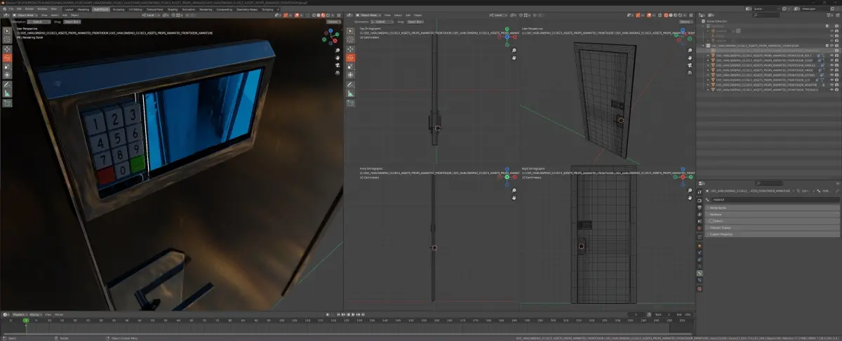 About this asset:Fully rigged dooor with frame, rigged too open, and turn handle, with included interior and exterior keypad with CCTV display, high detail PBR