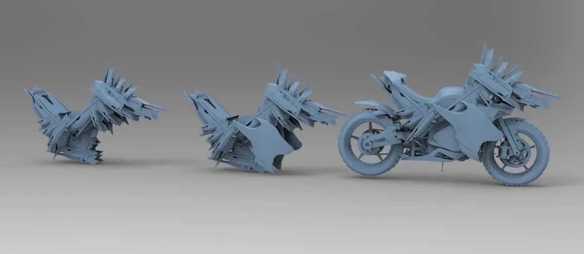 HomeCatalogCyberpunk dragon bike with extra seats designs 3D model