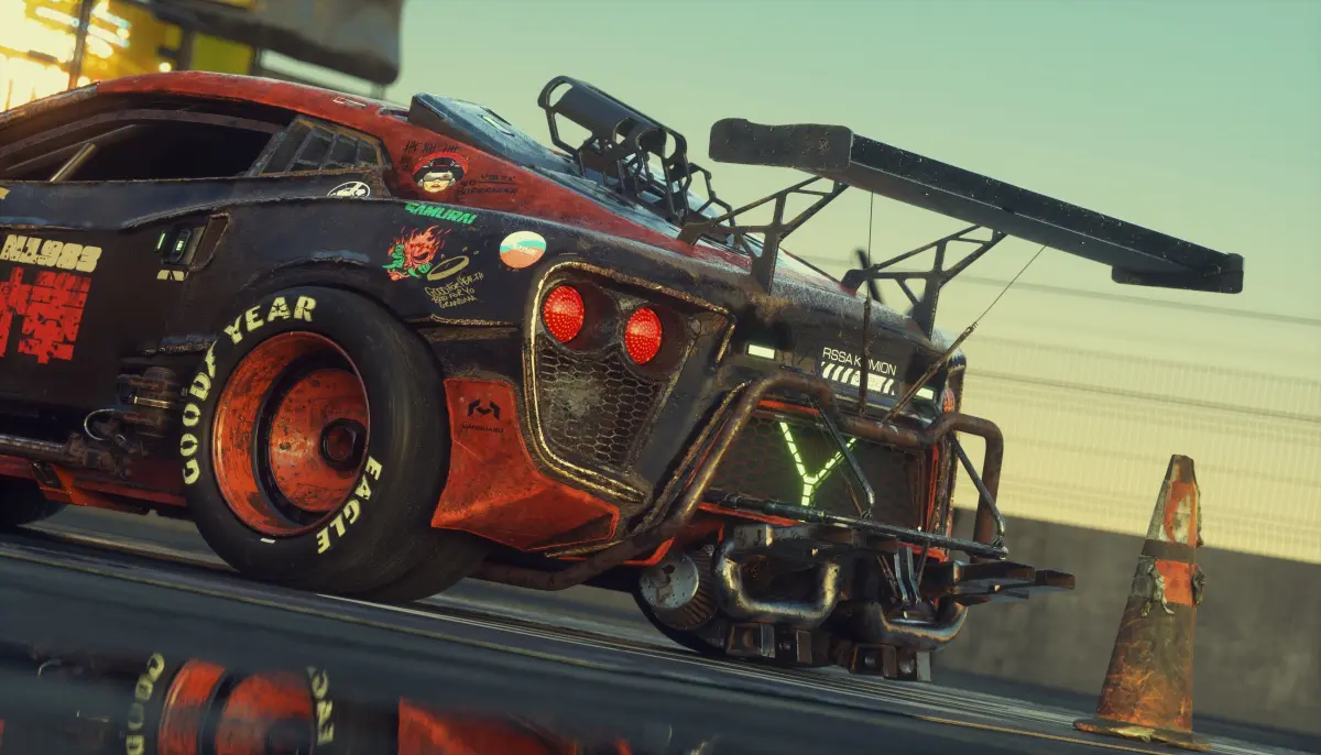 A customized cyberpunkish concept based on The Evil Empire 's wildest custom built drift car the Flanker-F