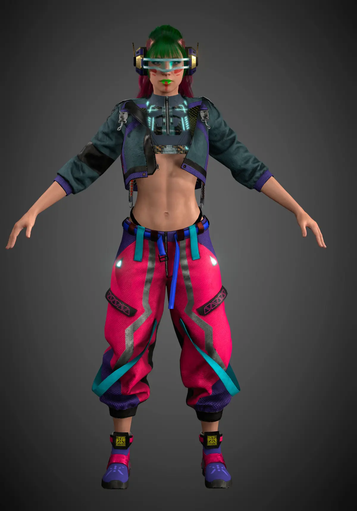 Cyber Punk character rigged with texture 2K and morph target for facial animation.Contain a project with the character already retargeted on the thirdperson template UE5 Using Advance CC Shader with SSAO and all the stuff <3