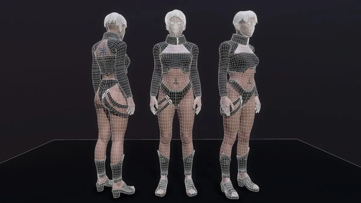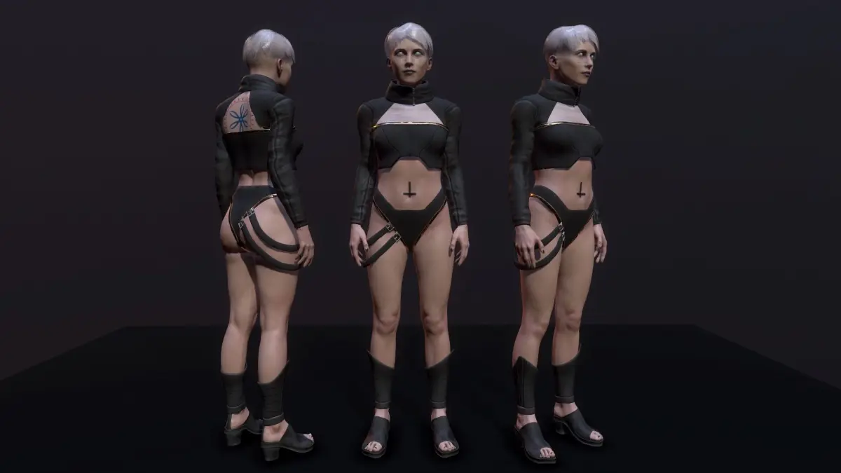 Cyberpunk girl 3d model, PBR textures, low-poly