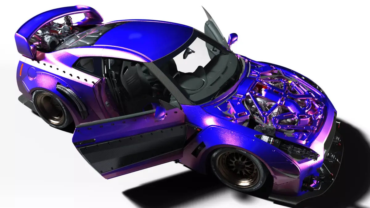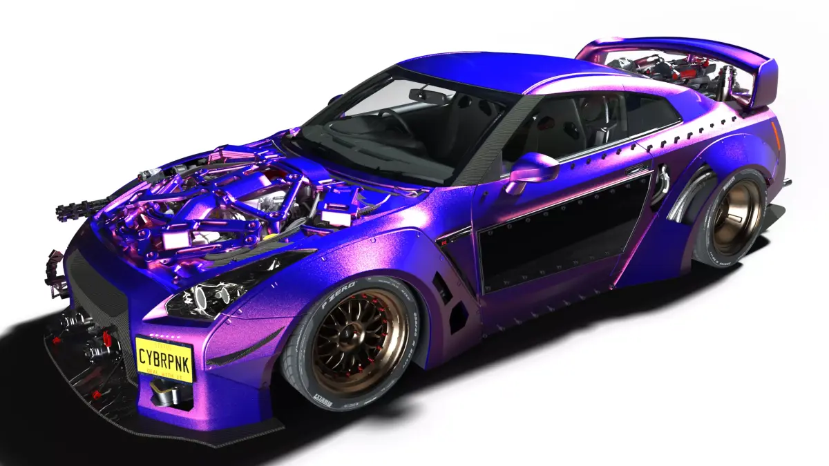 Dominate the neon-drenched streets of the future with this aggressive, high-detail 3D model of a Nissan GT-R (R35) heavily customized in the Cyberpunk aesthetic. This vehicle is a perfect blend of modern performance and dystopian, exposed mechanics.