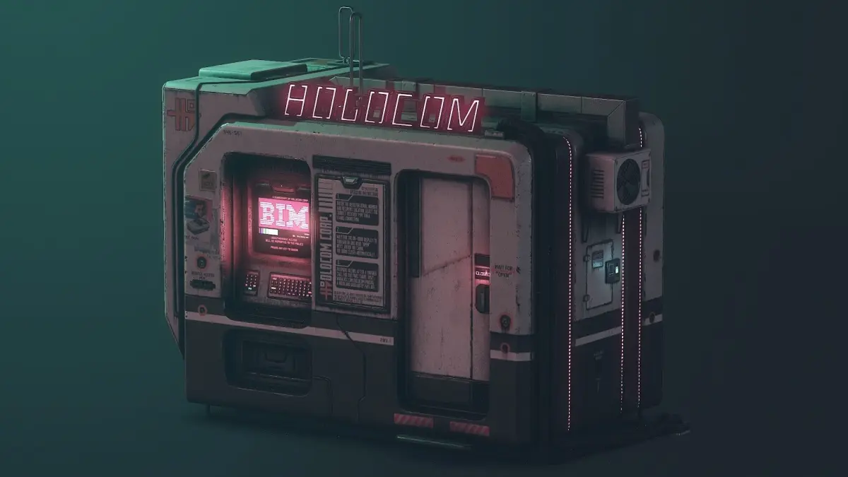 This is a lowpoly model of a cyberpunk Holocom booth, ready for use in games or projects.