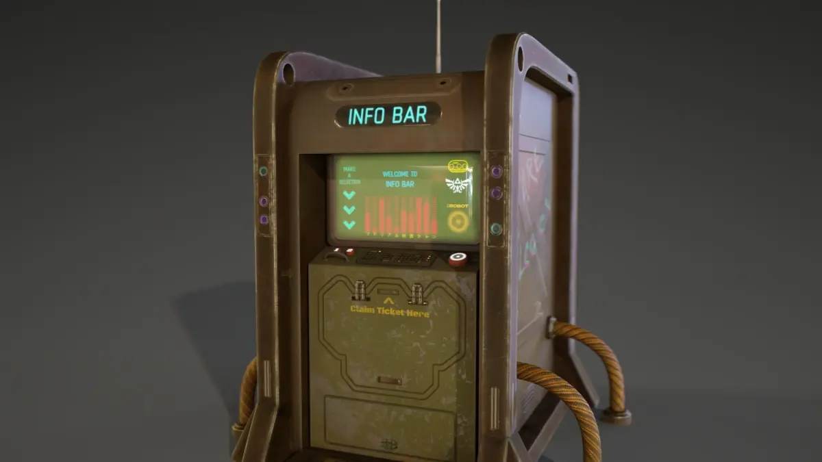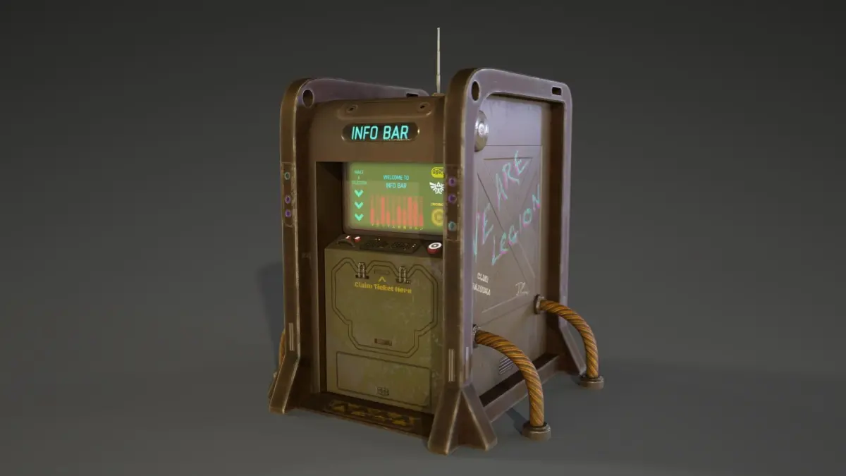 Model of my cyberpunk style ticket machine, very chunky & fun to make. 4K & 2K PBR textures. 2996 polys, 6506 tri’s, 3441 verts. Unreal textures, Unity textures, PBR and GLB textures all inc AS zips, as well as native max file set up to render in Vray next, and also a Blender file set ub with GLB textures. FBX, OBJ and GLB model files included.