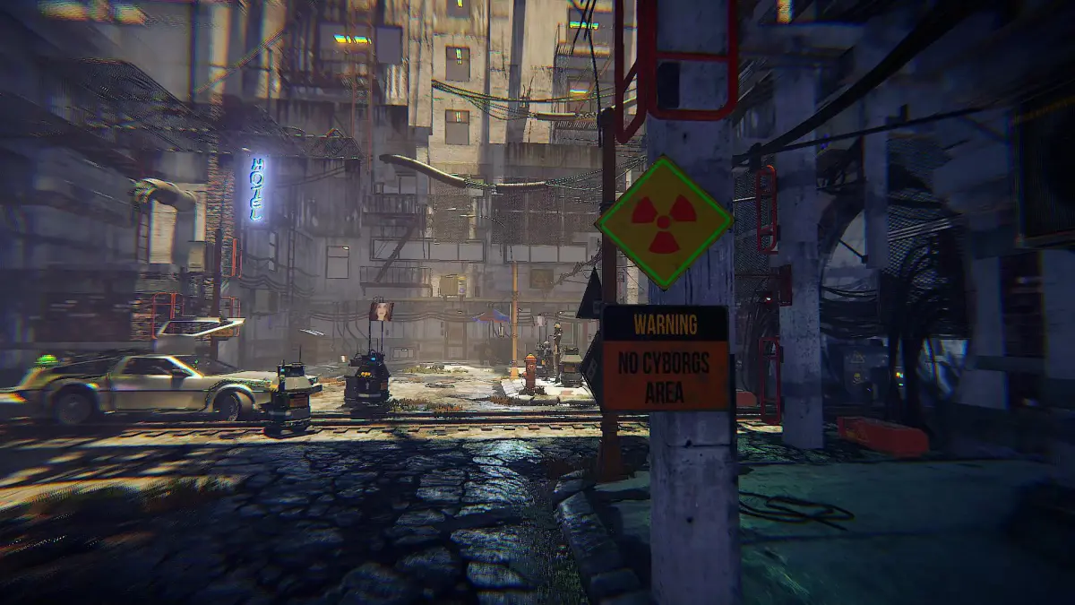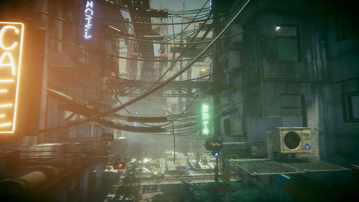 ● props: street lamps, fences, pipes, cables, conditioning, trash bins;