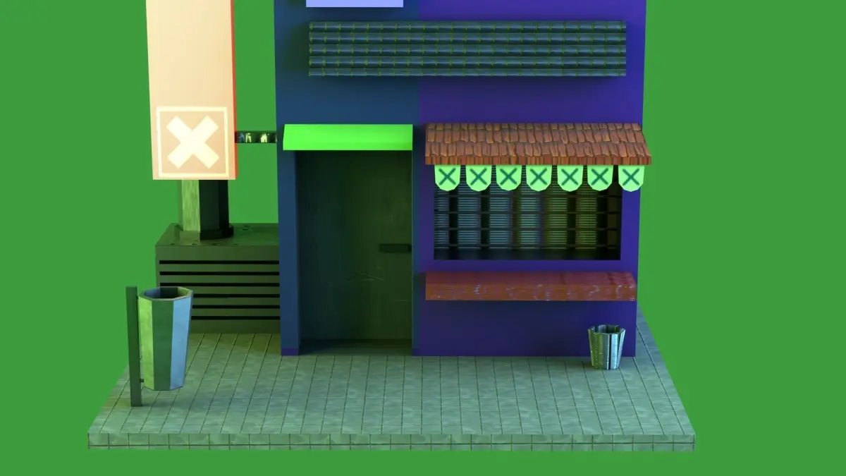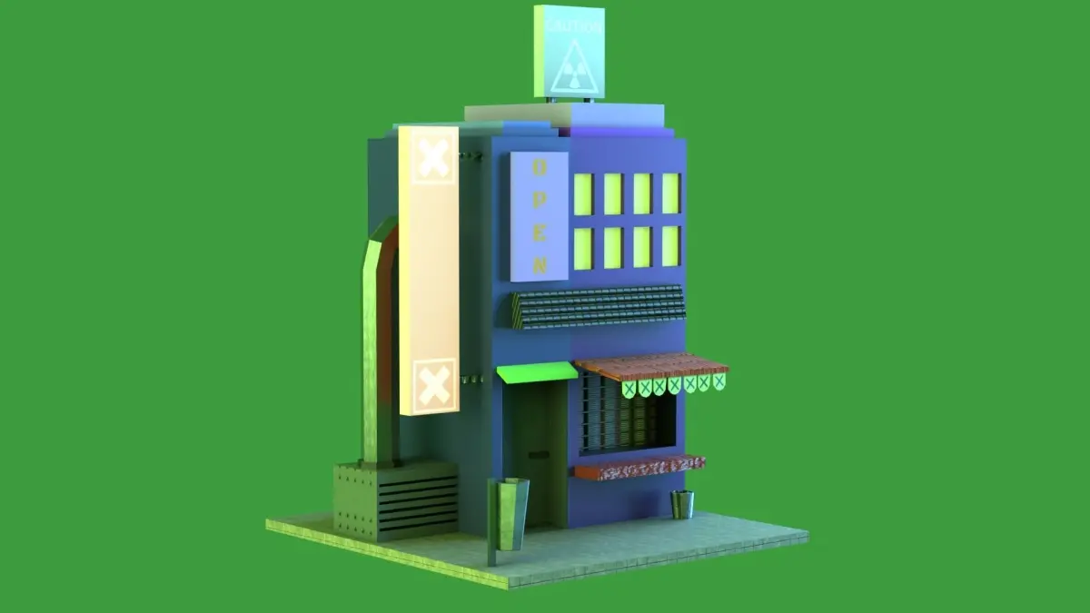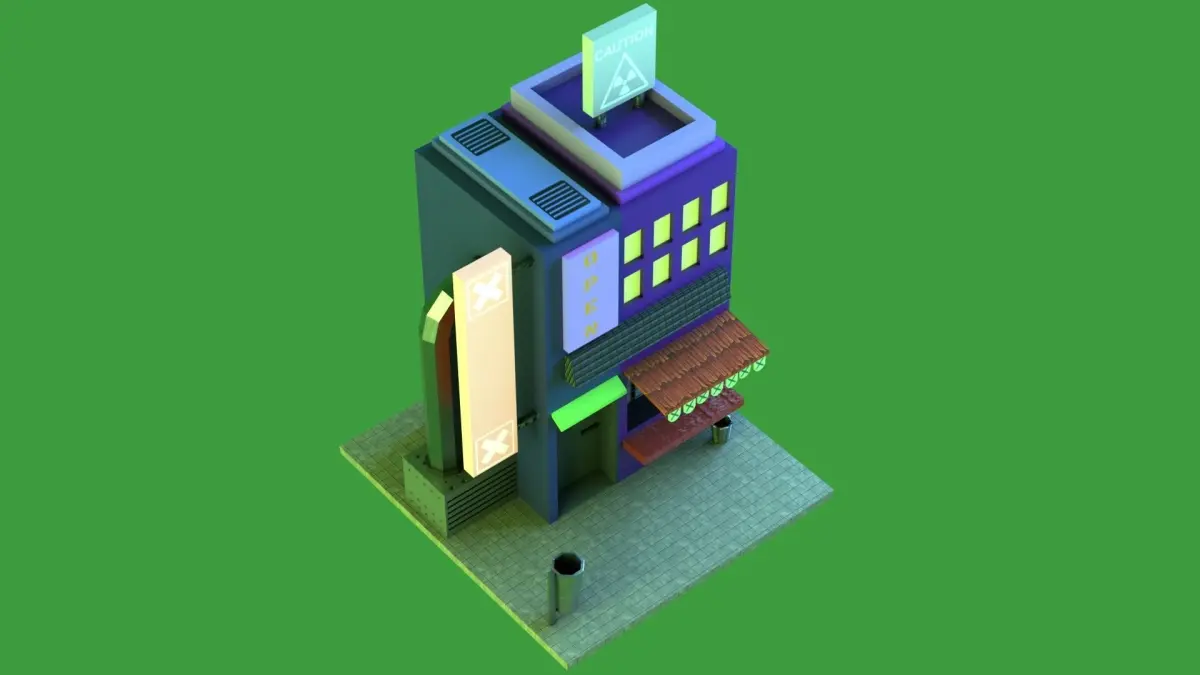 Cyberpunk building for mobile videogames.