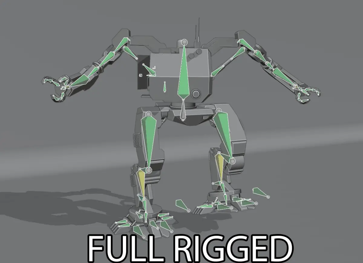 Piloted mech. This model has a full rig, all the necessary constraints and textures in different resolutions.