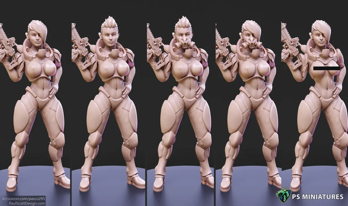 Comes with 4 head variants and 2 body variants (one pinup and one regular).
