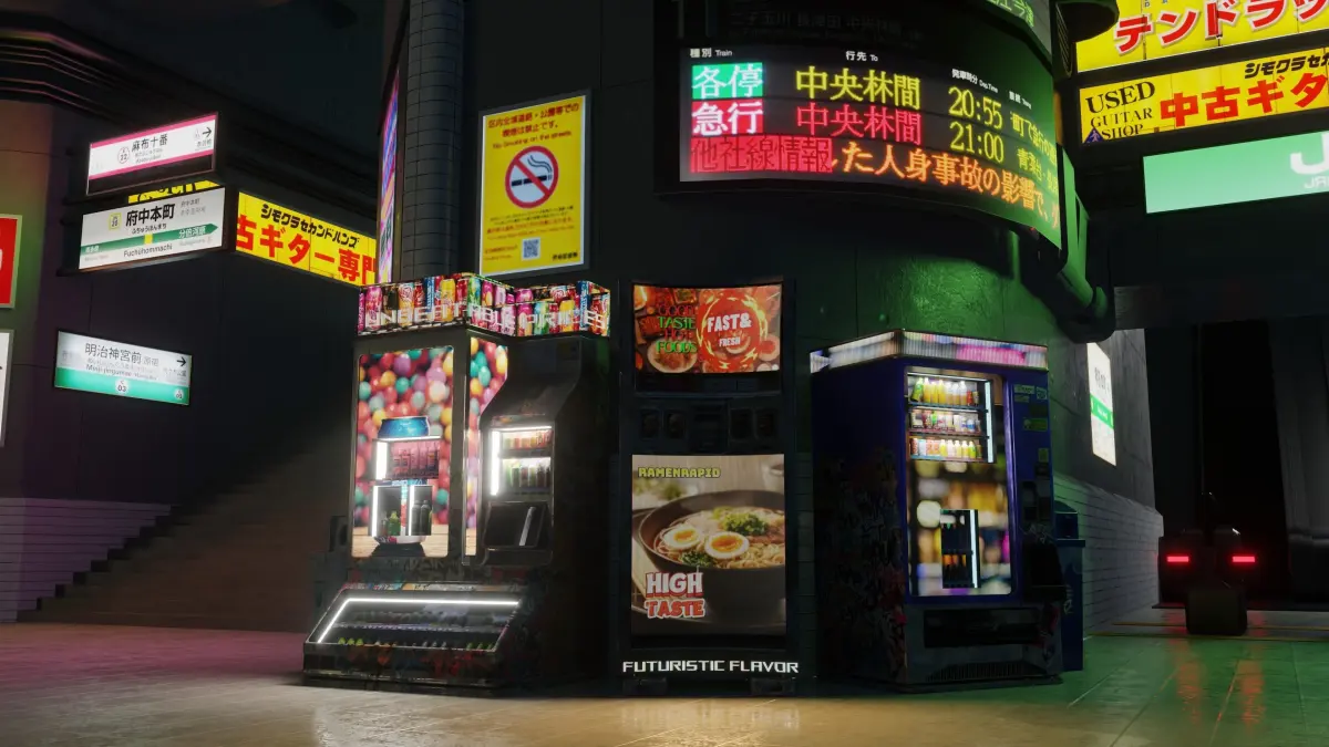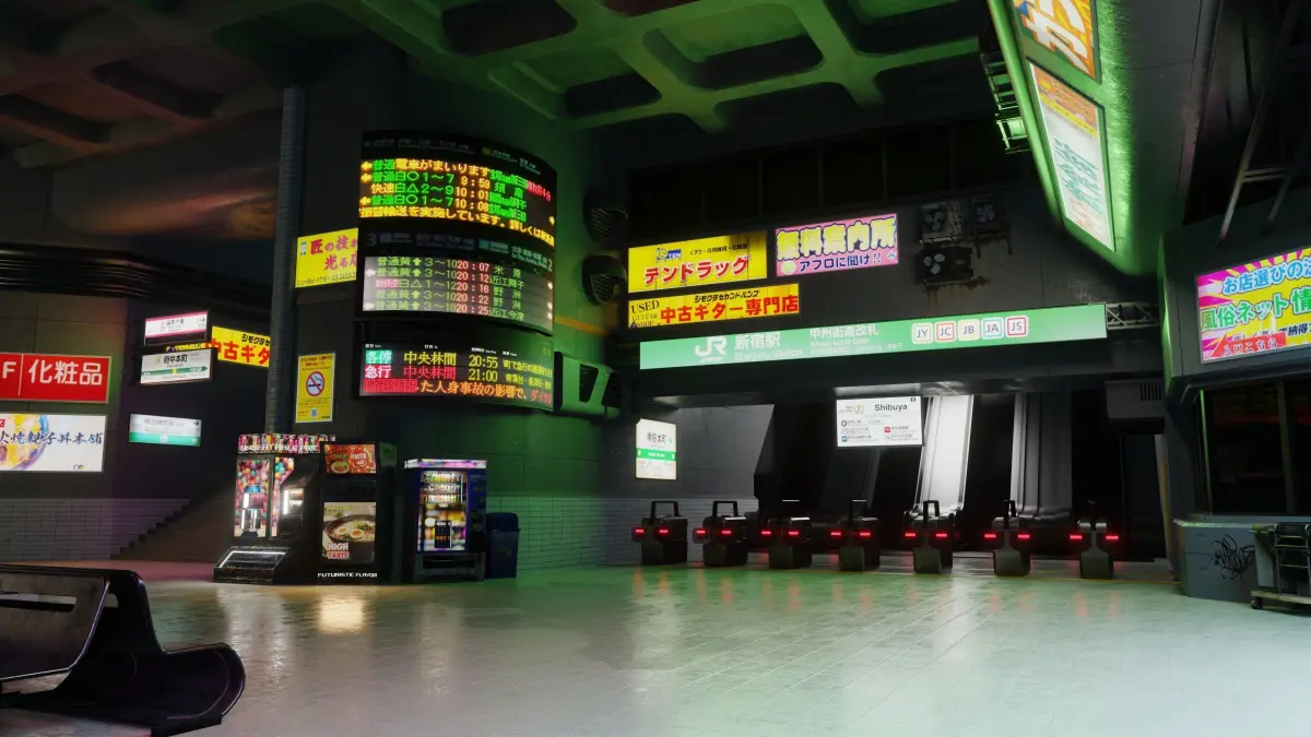Cyberpunk Metro Station available use with Blender 4.1, midpolygon and good quality detailed props, all models texture and scene made by me.