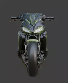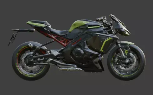 Integrated Lighting: Aggressive front fairing with high-output futuristic headlights and green neon accents.