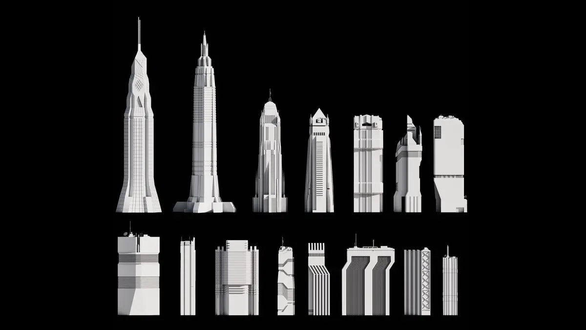 This is a set of 15 low and mid poly buildings that you can use in your scene.