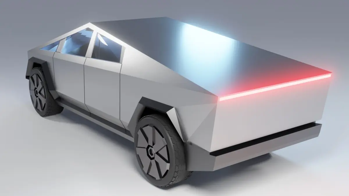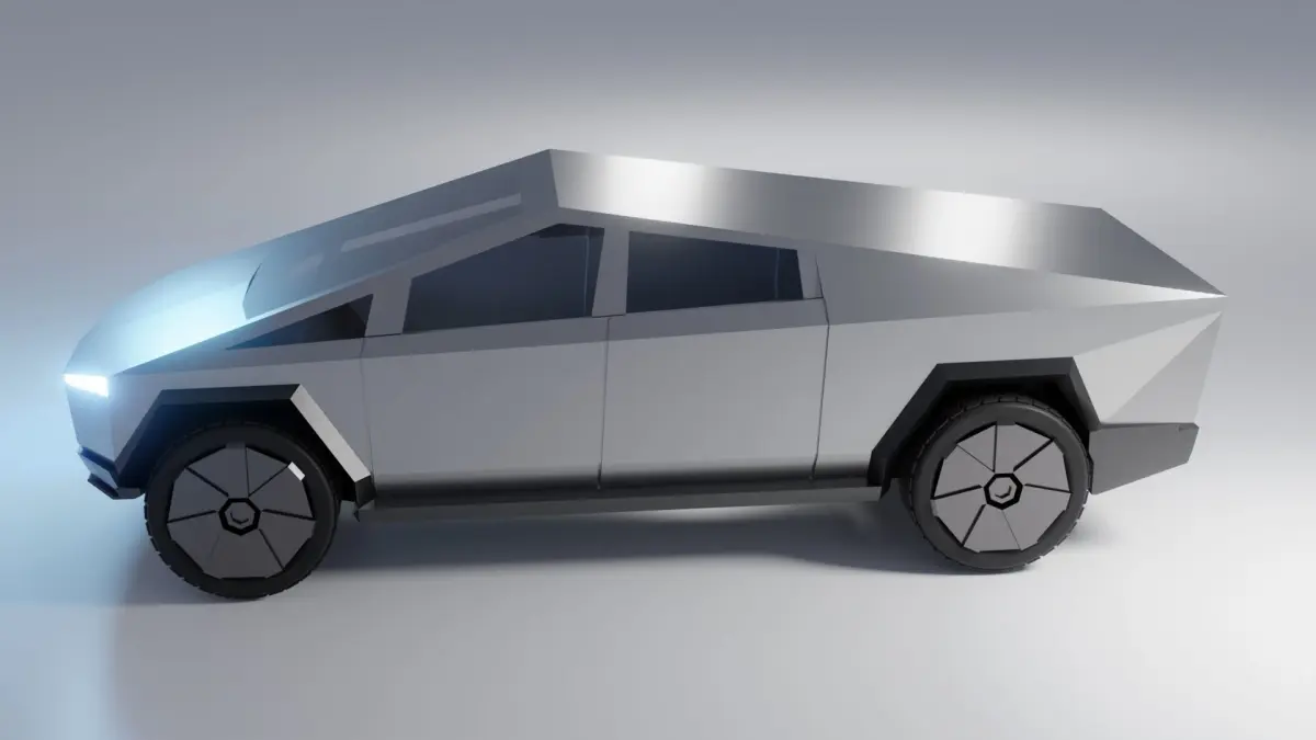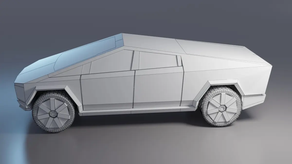 This is a cybertruck car model that can be disassembled into a body, bumper, tires and rims.