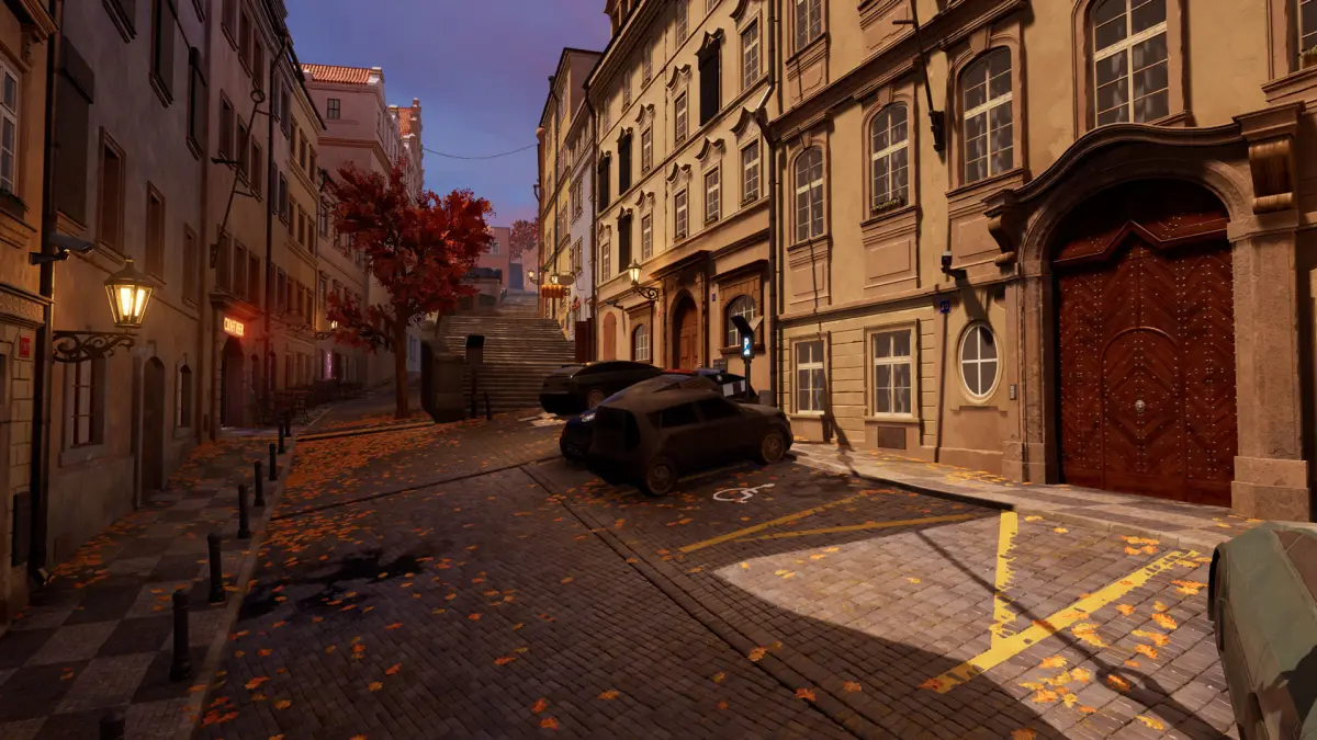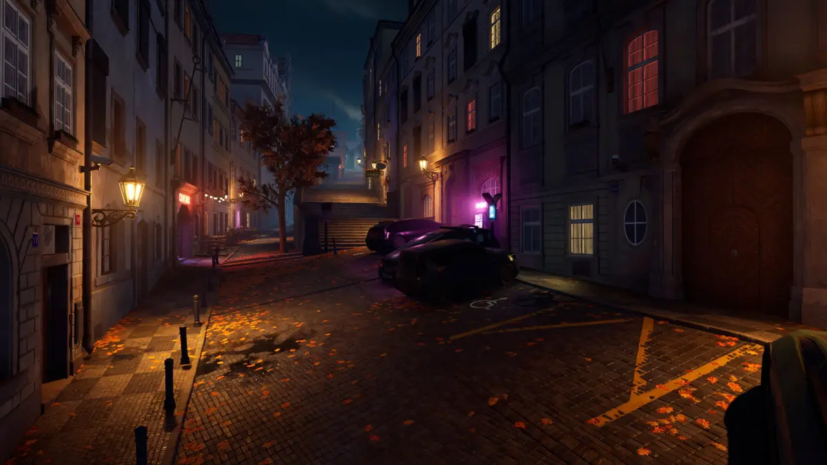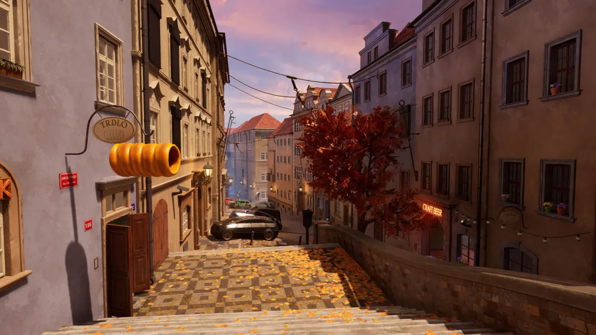 Cyberpunk Prague street pack contains a set of different props and architectural assets for building beautiful european streets.
