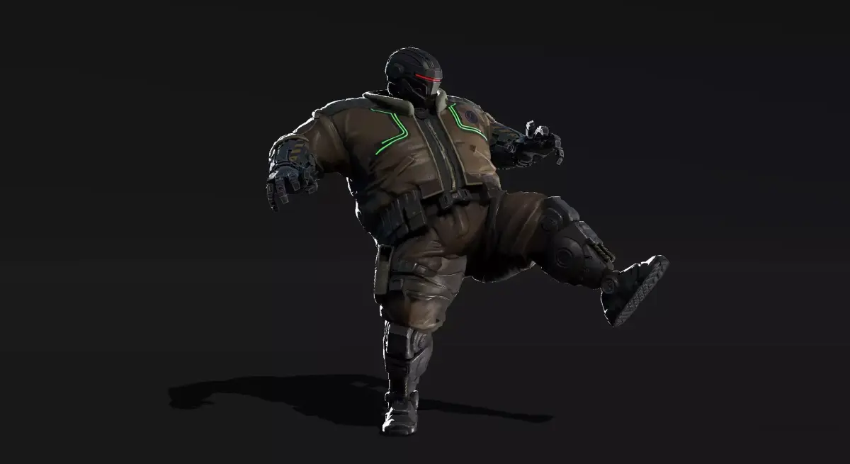 The big strong but friendly buddy you can trust! Can be used for cinematic cyberpunk projects, but works also as stylized character! I created him to use him for a more serious cinematic project > see screenshot
